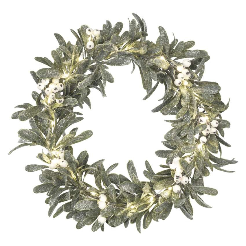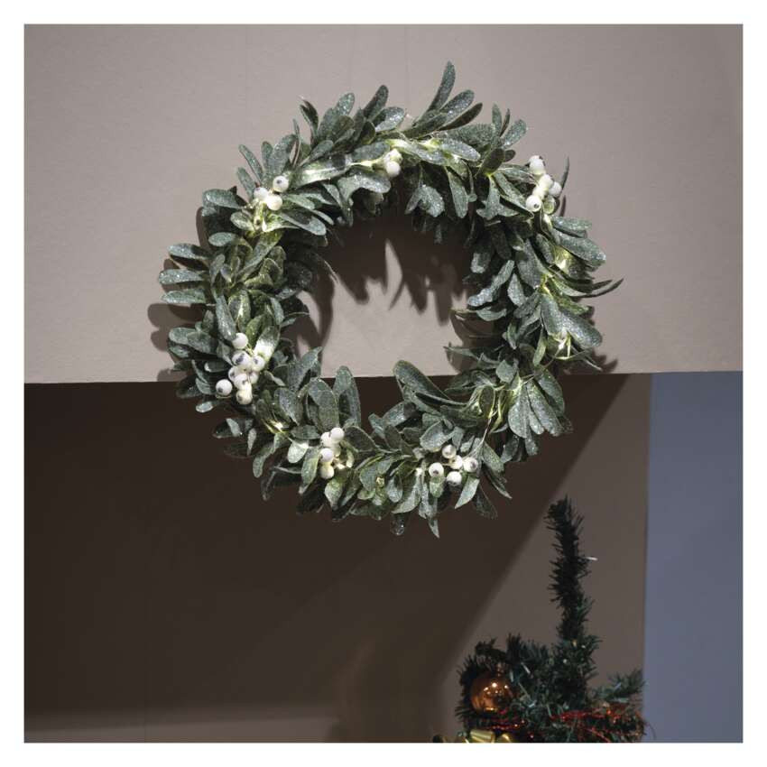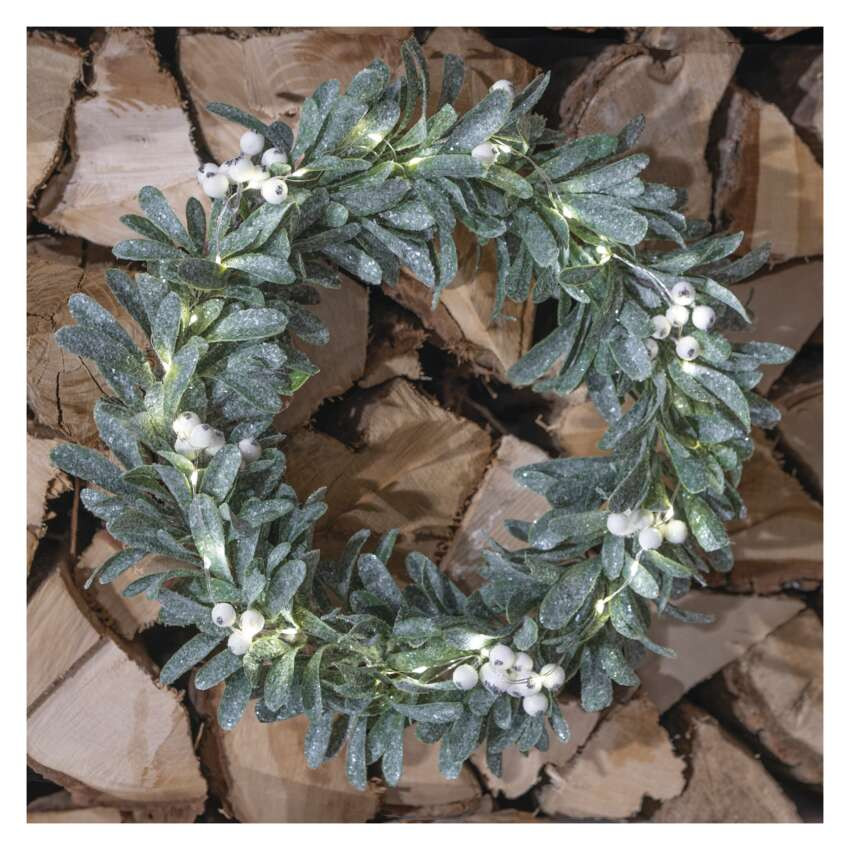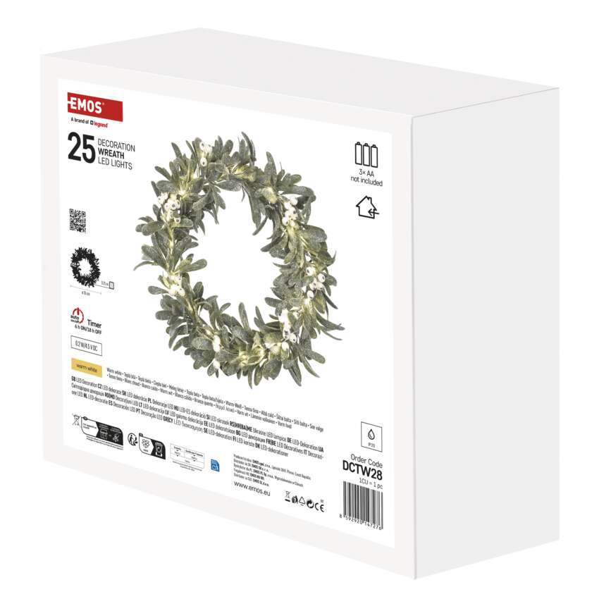 EMOS DCTW28, LED dekoráció - fagyöngy koszorú, 3x AA, meleg fehér, időzítő