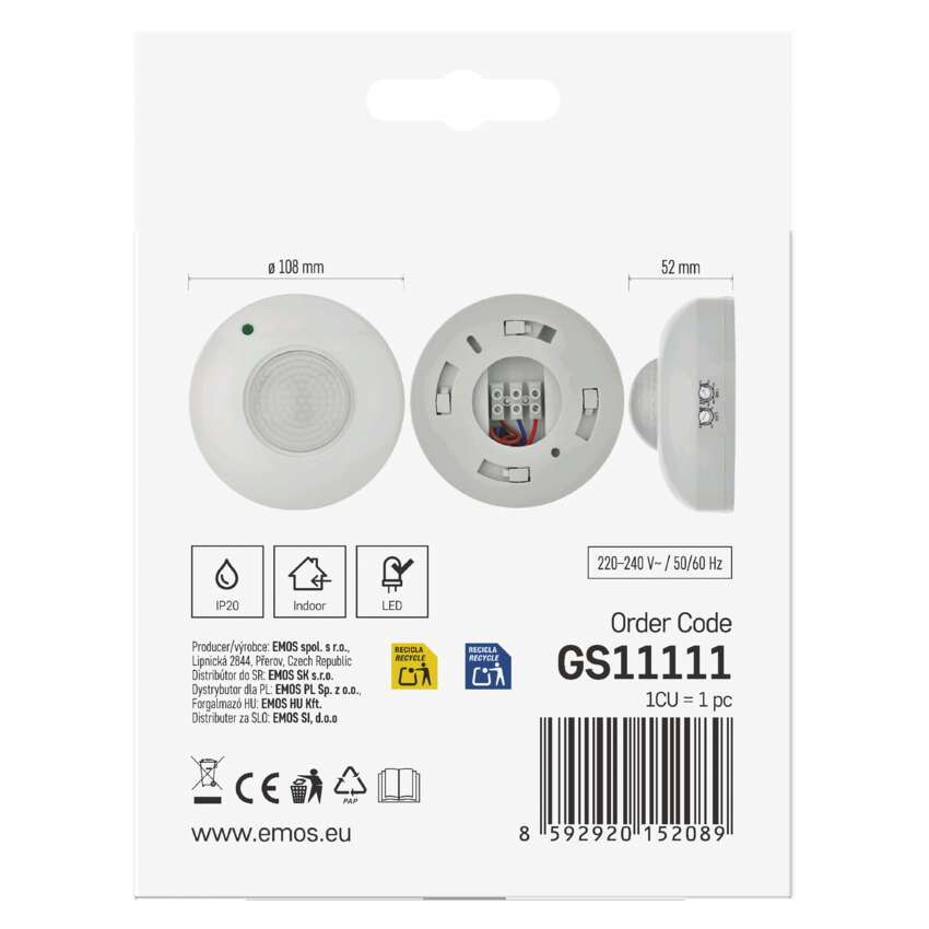 EMOS GS11111, EMOS Mozgásérzékelő (PIR) IP20 1200W
