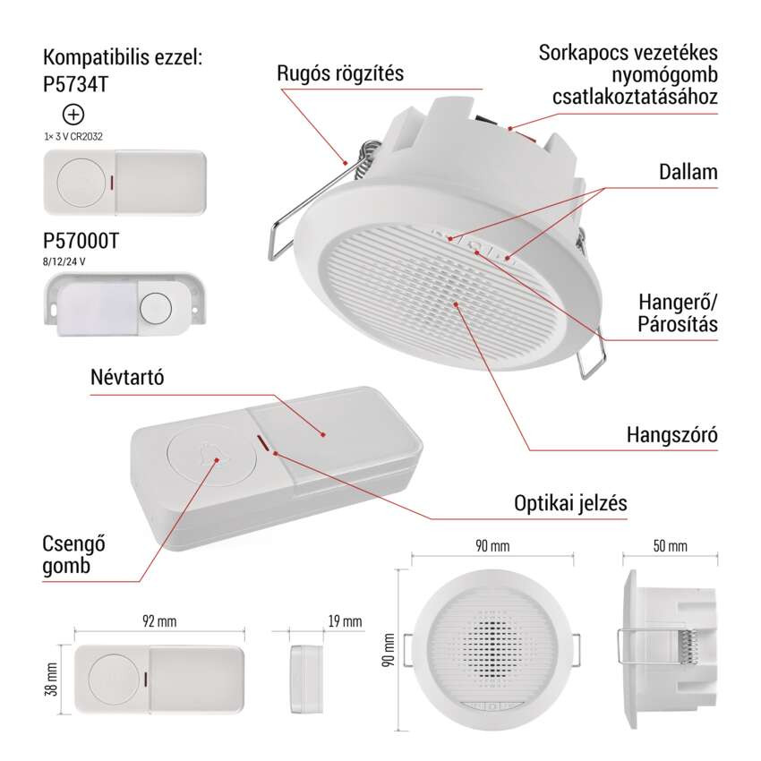 EMOS P57103, Vezetékes/Vezeték nélküli csengő P57103, beépített