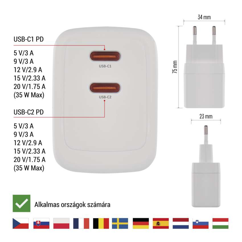 EMOS V03G35, EMOS Univerzális USB töltő GaN PD 35 W max.
