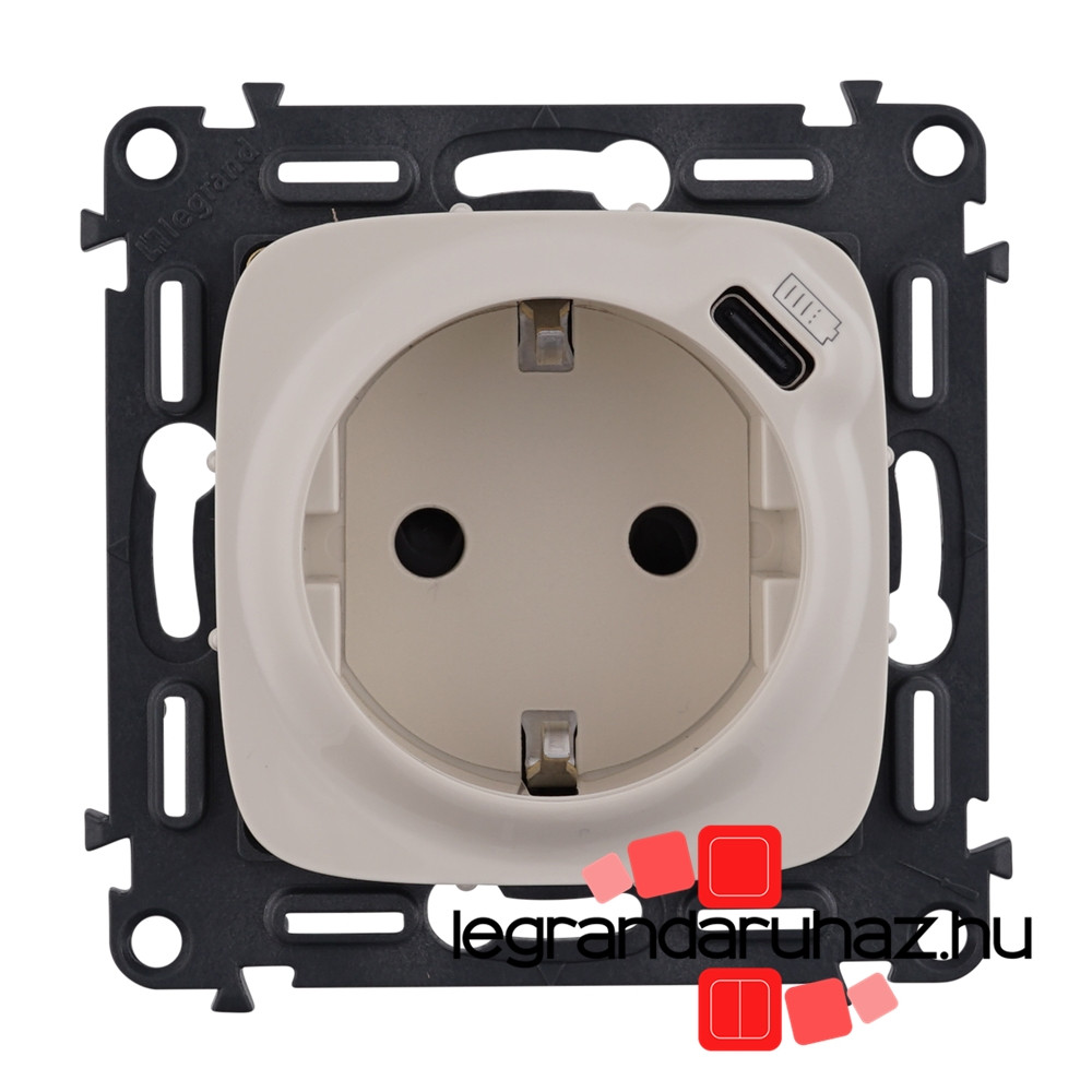 Legrand Valena Allure 2P+F csatlakozóaljzat+ USB C-túpusú 1,5A-5V-7,5W töltőaljzat, Elefántcsont, Legrand 753006