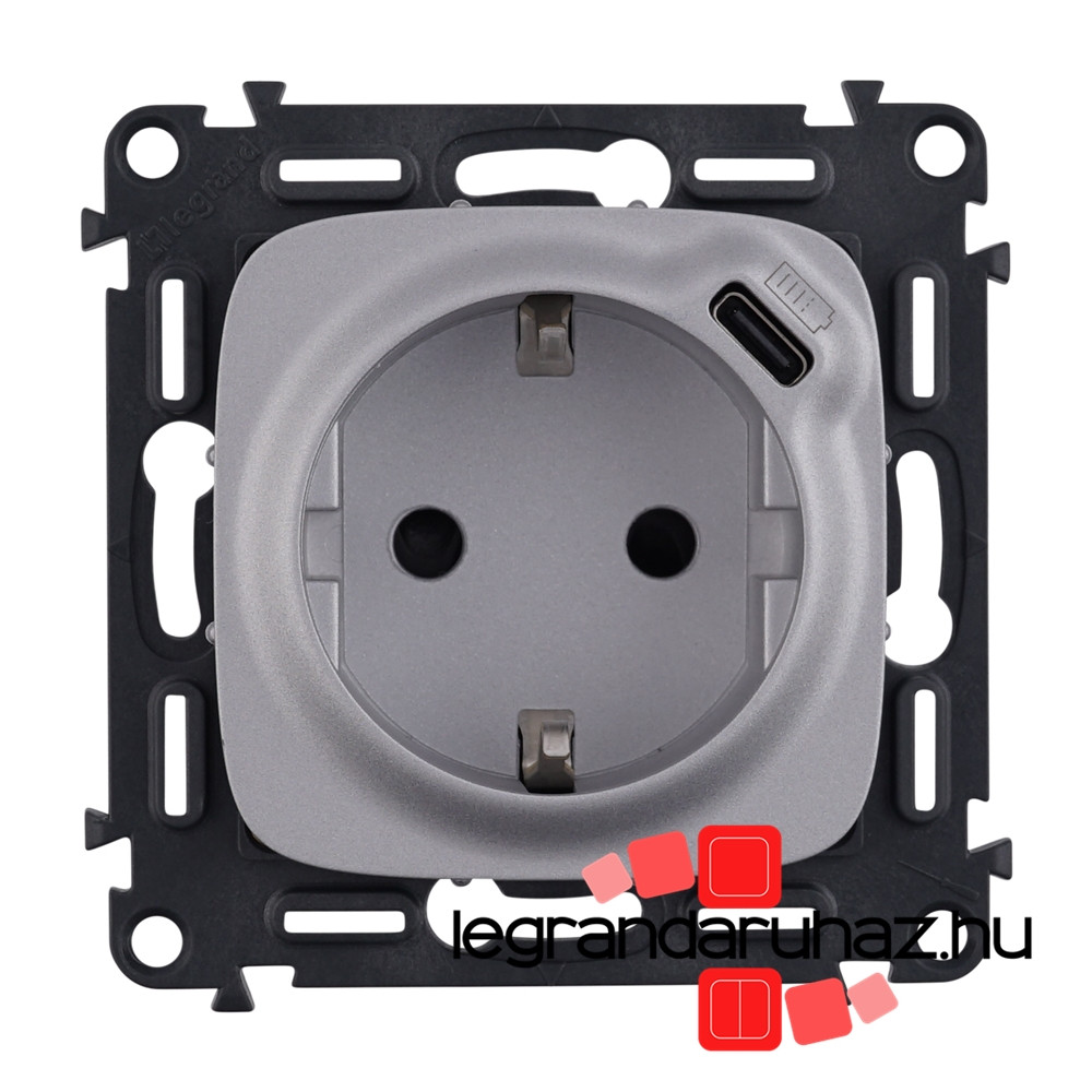Legrand Valena Allure 2P+F csatlakozóaljzat+ USB C-túpusú 1,5A-5V-7,5W töltőaljzat, Alumínium, Legrand 753007